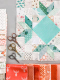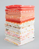 This Quilt Kit comes with 44 Fat Quarters and a full-color 10-page paper pattern. Fabrics will be similar to the bundle pictured, but some prints will vary depending on availability. This kit includes everything you need to make the scrappy, patchwork top for this beautiful coral kit, finished size is a 82" x 68" quilt.