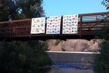 Here Fishy Fishy is a patchwork fish pattern from (10) 1/4 yard pieces & 3-1/2 yards of white creating a finished quilt that measures.