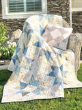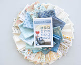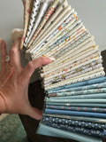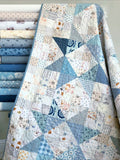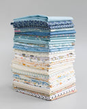 This Quilt Kit comes with 24 fat quarters of low volume and 12 fat quarters of dusty blue -colored fabric and a full-color illustrated paper pattern. Fabrics match exactly the bundled pictures and will be very similar to the pictured quilt. This kit includes everything you need to make the scrappy, patchwork top for this beautiful blue star quilt.