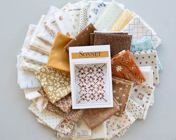 This Quilt Kit comes with 24 fat quarters of low volume and 12 fat quarters of cinnamon-colored fabric and a full-color illustrated paper pattern. Fabrics will be similar but will include different prints from the pictured quilt (see bundle picture for prints). This kit includes everything you need to make the scrappy, patchwork top for this beautiful cinnamon-colored twin quilt.