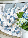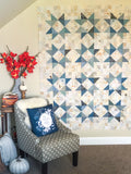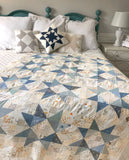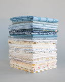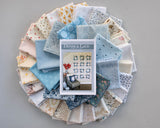 This Quilt Kit comes with 24 fat quarters of low volume and 10 fat quarters of dusty blue -colored fabric and a full-color illustrated paper pattern. Fabrics match exactly the bundled pictures and will be very similar to the pictured quilt. This kit includes everything you need to make the scrappy, patchwork top for this beautiful blue star quilt.