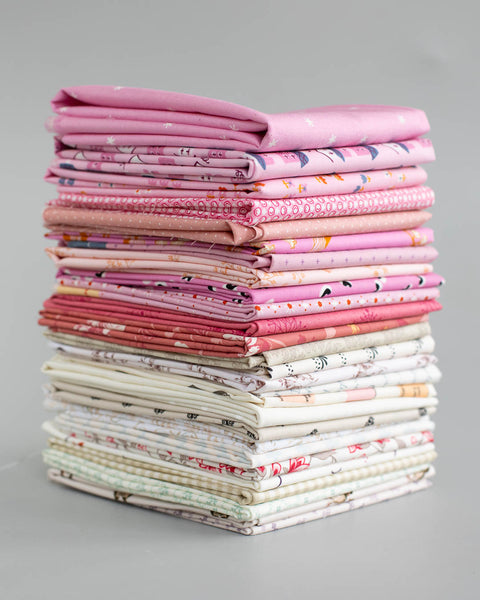 This Quilt Kit comes with 40 Fat Quarters, which is 10 yds of designer quilting fabric.  Fabrics will be similar to the bundle pictured, but some prints will vary depending on availability. This kit includes everything you need to make the scrappy, patchwork top for this beautiful pink 99.5" x 69.5" quilt.