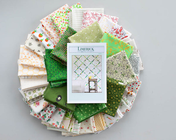 This Quilt Kit comes with 29 fat quarters of low volume and 10 fat quarters of green-colored fabric and a full-color illustrated paper pattern. Fabrics match exactly the bundled pictures and will be very similar to the pictured quilt. This kit includes everything you need to make the scrappy, patchwork top for this beautiful green twin quilt.